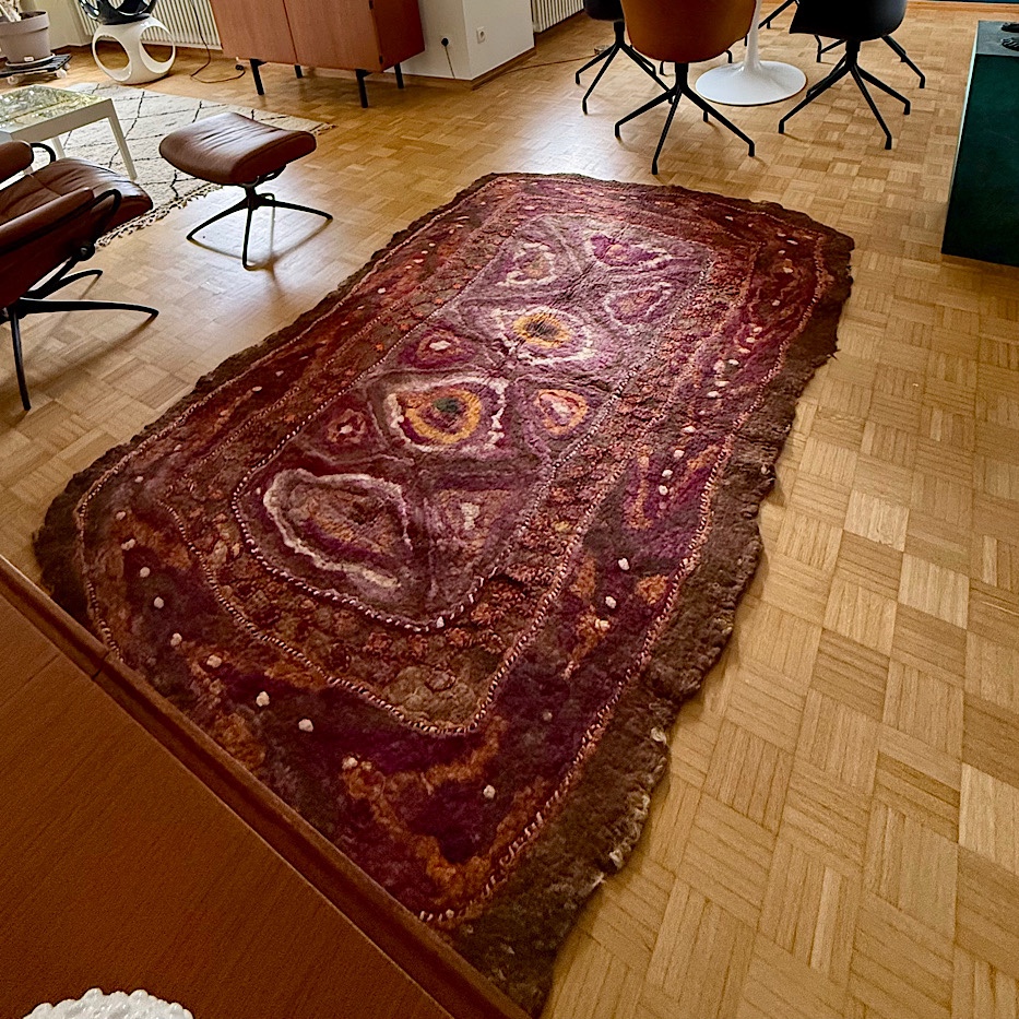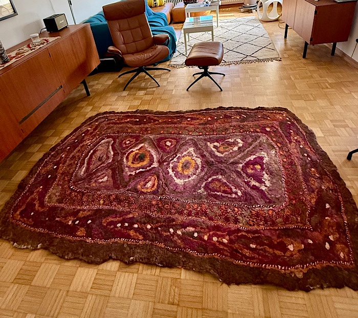 Ich habe in dem Teppichladen in San Sebastian, der sich in der gleichen Straße befindet wie das Restaurant, in dem auch der Burnt Cheesecake erfunden wurde, einen wunderschönen afghanischen gewalzten Teppich gefunden. Ich trug mich schon lange mit der Idee, für den Eingang des Wohnzimmers etwas anderes zu finden. Er wird nächste Woche geliefert.