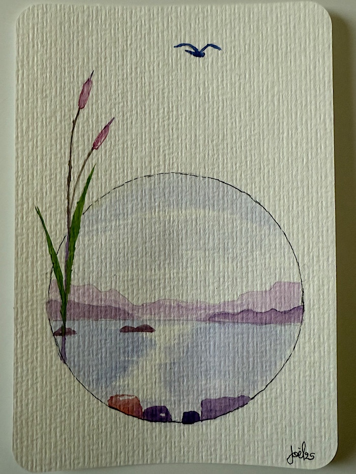 Wieder daheim malte ich ein wenig. Immer auf der Suche nach Motiven, fand ich eines das ich ausprobieren wollte. Das Prinzip erst die hellen Dinge zu malen und dann immer dunkler zu werden, habe ich noch nicht so richtig verinnerlicht. Dabei ist das wichtig wenn man Landschaften malen will. Ich fand eine von der ich glaubte dass ich sie hinbekäme.