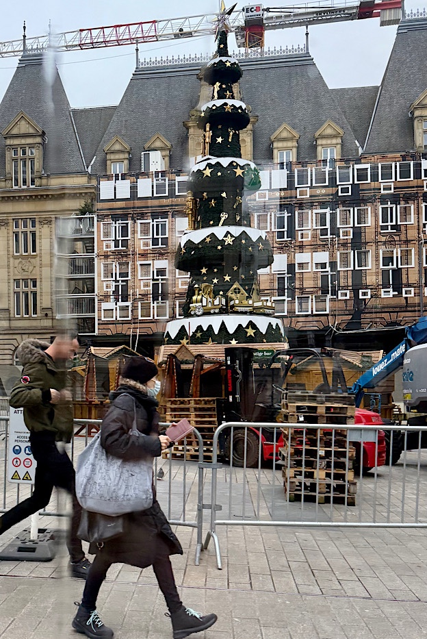 Ich fuhr am Hamilius vorbei wo man dieses Jahr noch größeres Weihnachtsgedöns aufstellte. Dieser große falsche Weihnachtsbaum scheint mir neu zu sein:
