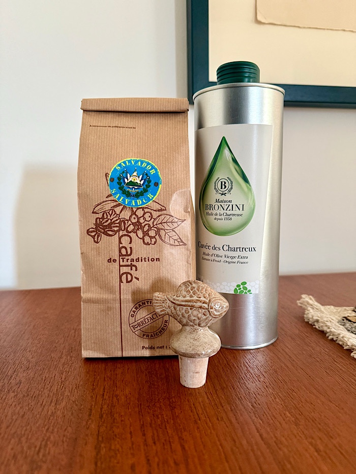 Am frühen Abend fuhr ich ins benachbarte Ausland wie die letzten Sonntage auch. Dieses Mal musste ich aber nicht nach dem Rechten sehen, weil die N zurück war. Ich gab ihr den Schlüssel zurück, und wir speisen gemeinsam zu Abend. Sie hatte mir ein paar hübsche Mitbringsel mitgebracht, einen Korken, frisches Olivenöl und Kaffee.
