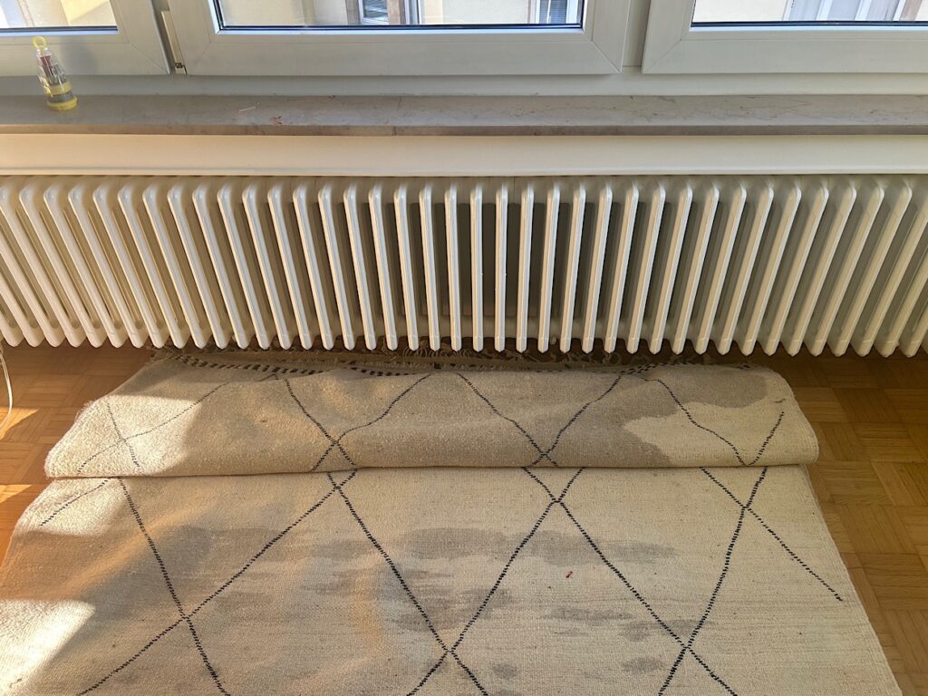 Dann kam das Unerwartete des Tages. Ich hatte einen Heizungskörper am Tag davor entlüftet und wahrscheinlich nicht mehr gescheit zugedreht. Heute sah ich beim Pflanzengießen dass der Teppich plitschnass war.