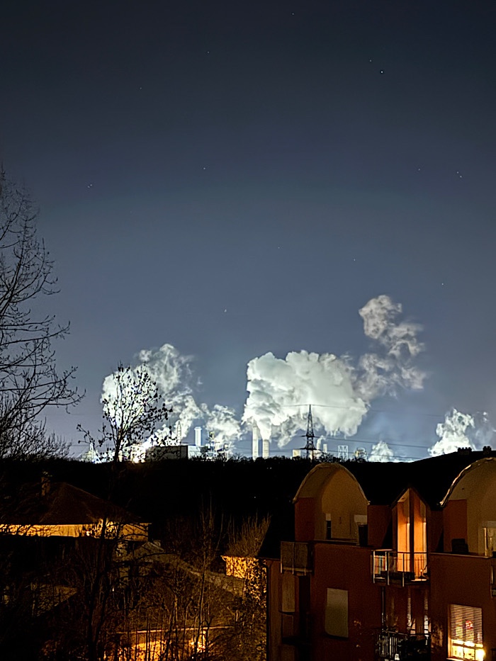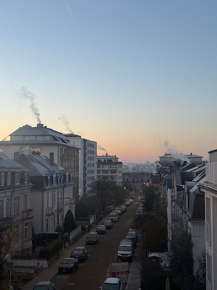 Am Nachmittag bekam ich einen Anruf, ob ich Lust hätte, mit auf ein Abendessen zu Freunden im Süden des Landes zu kommen. Hatte ich! Und es wurde ein sehr schöner Abend. Von deren Balkon machte ich ein spektakuläres Foto der Industrie Skyline auf von Belval.