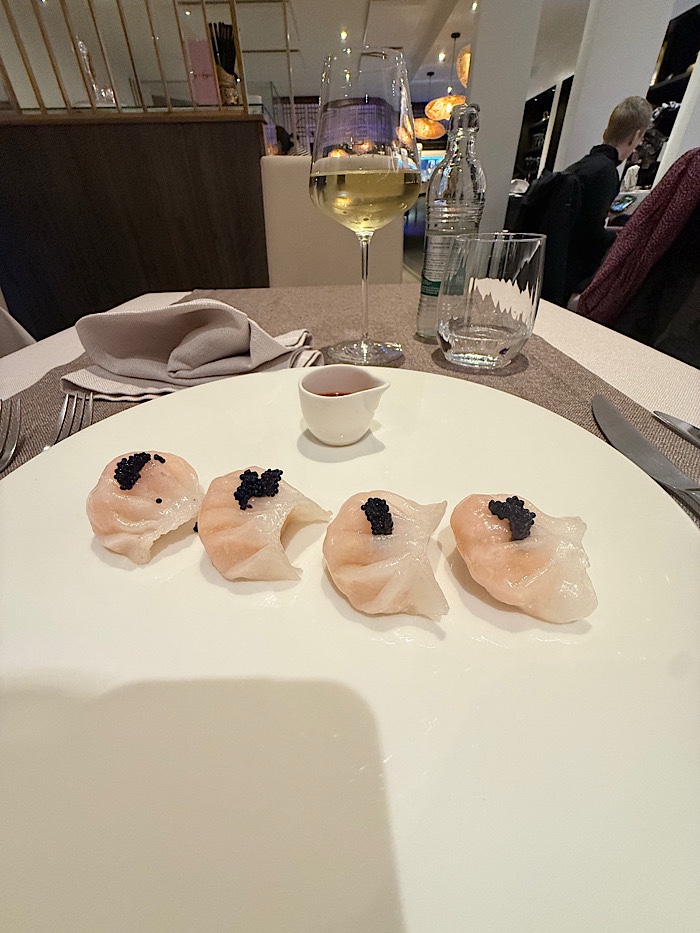 Als Vorspeise gab es ein paar Dim Sum mit Schrimps gefüllt. Und im Anschluss Hühnchen mit schwarzem Knoblauch, von dem ich aber kein Foto gemacht habe.