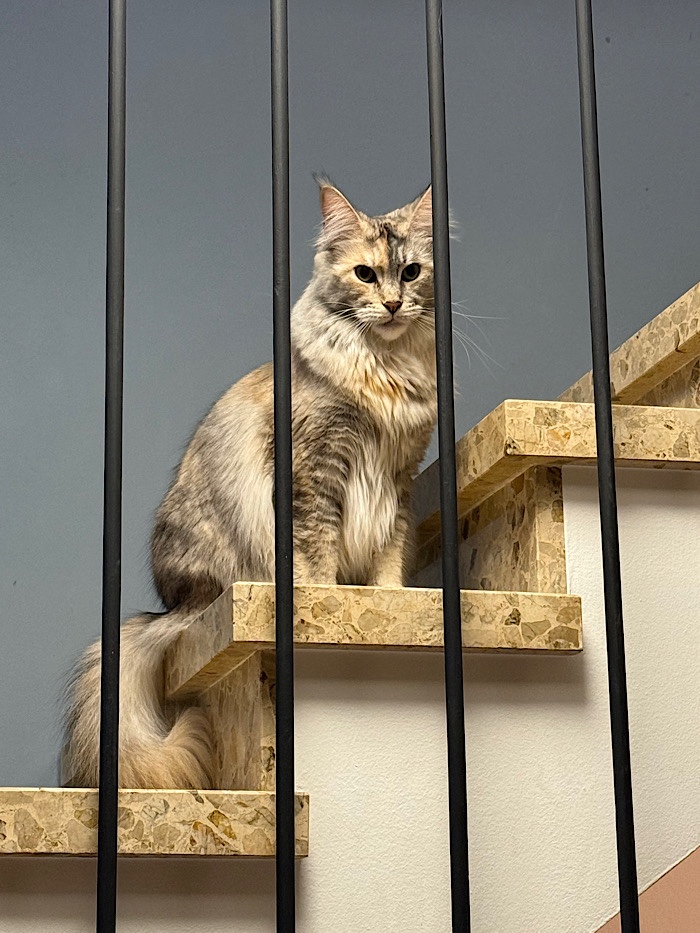 Da wäre zuerst mal ein Bild, was noch von letzter Woche ist. Die D und ich waren bei der J zu Gast. Wir waren schon länger nicht mehr dort und ich sah zum ersten Mal wieder die Main Coon Katze wieder. Ich hatte sie damals nur als kleines Wollknäuel gesehen. Jetzt ist sie fast ausgewachsen. Ein Stubentiger im wahrsten Sinne des Wortes.