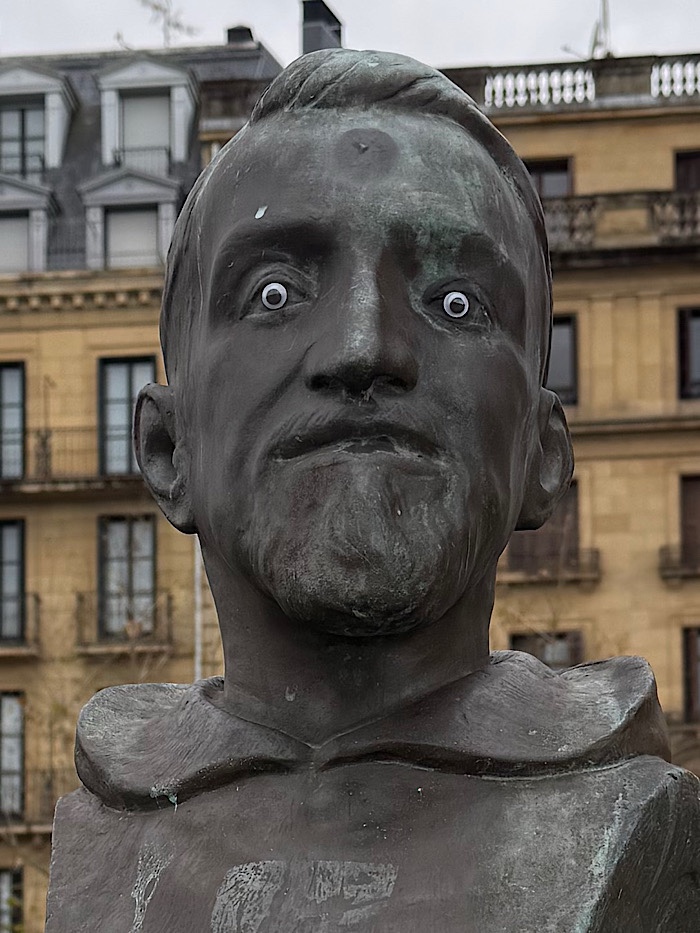 Jemand hatte dem Padre ein paar Googly Eyes aufgeklebt.