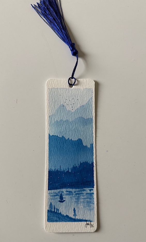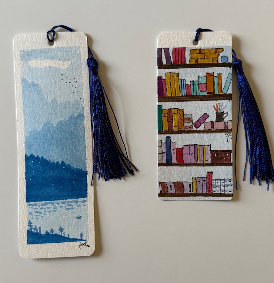 Ich malte ein paar Lesezeichen. Das Bücherregal musste ich kürzen, weil ich da etwas versucht habe, was nicht gelang.