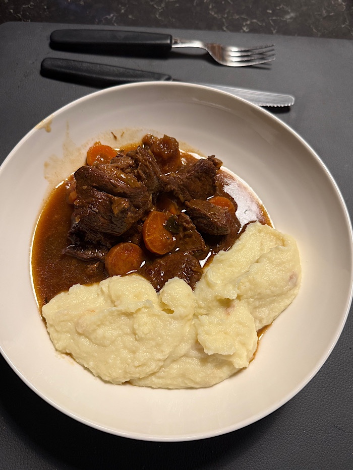 Wieder daheim fuhr ich zum Grand Frais und kaufte alles ein für etwas das ich vor ein paar Tagen wiederentdeckt hatte und zum letzten mal in der Alten Heimat gekocht hatte. Eine Carbonade Flamende.