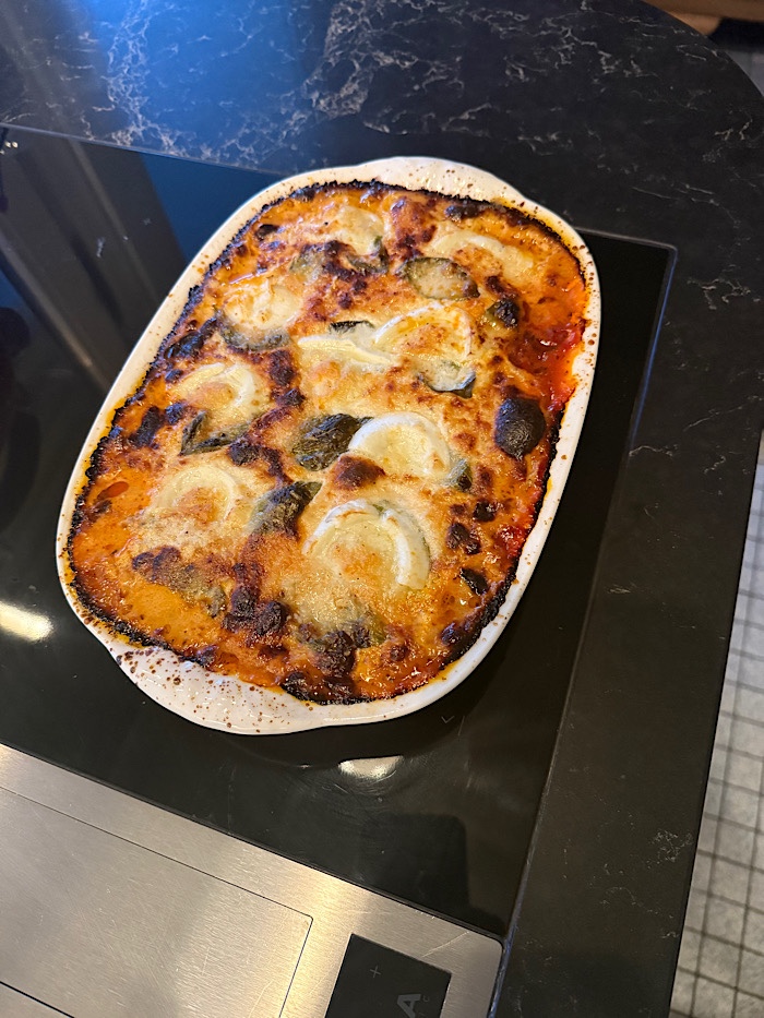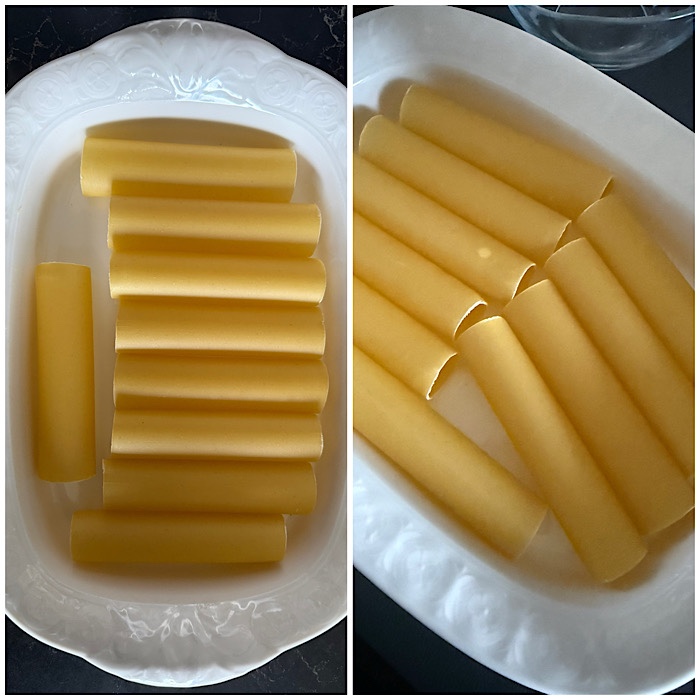 Cannelloni in die Backform legen, hat auch etwas von Tetris spielen. Ich wählte die zweite Variante, da ging eine mehr rein.