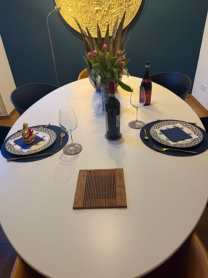 Zwischendurch deckte ich den großen Tisch im Wohnzimmer ein.