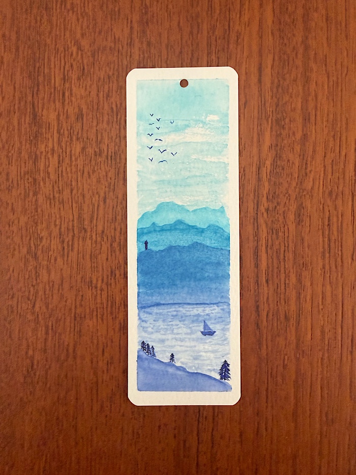 Später malte ich ein Lesezeichen in Blautönen,