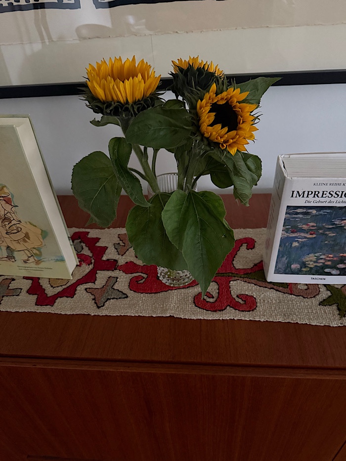 Und mit dieser Antwort ist der Donnerstag auch so weit beschrieben. Am Abend hatte ich ausgewählten Besuch hier, denn ich hatte Lust zu kochen. Der Besuch brachte Blumen mit: